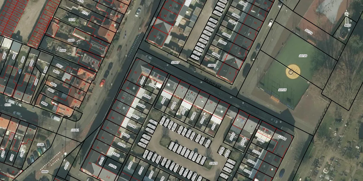 Gebruik de zoekbalk of klik op een perceel voor informatie over de adressen binnen dit perceel.