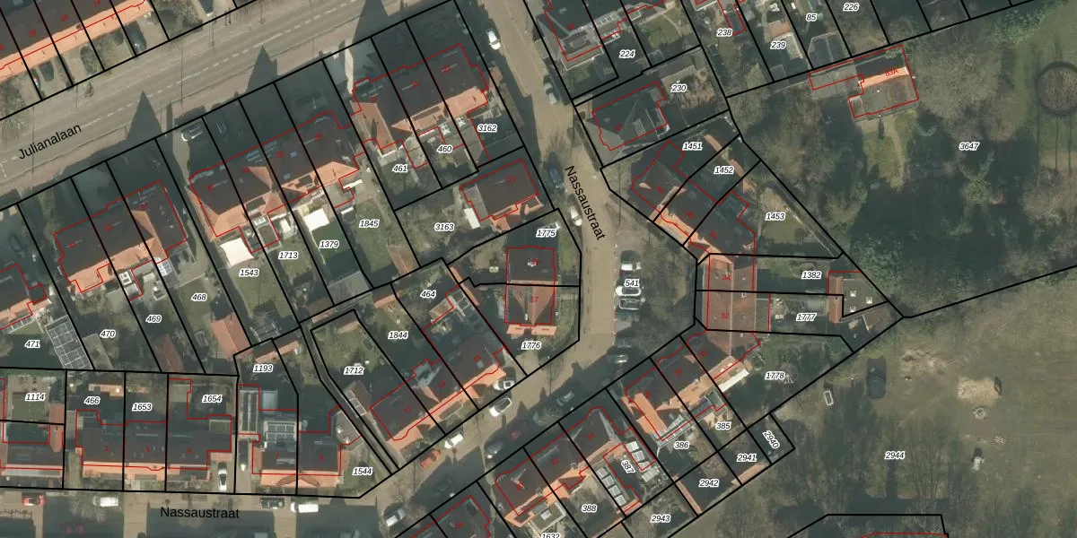 Het perceel waarop Nassaustraat 19 staat heeft een oppervlakte van 229 m². Dit is een middelgroot perceel. De perceeloppervlakte wordt geregistreerd door het Kadaster. Gedetailleerde informatie over de maten van dit perceel kunt u vinden in het rapport Kadastrale kaart met maatvoering van Nassaustraat 19.