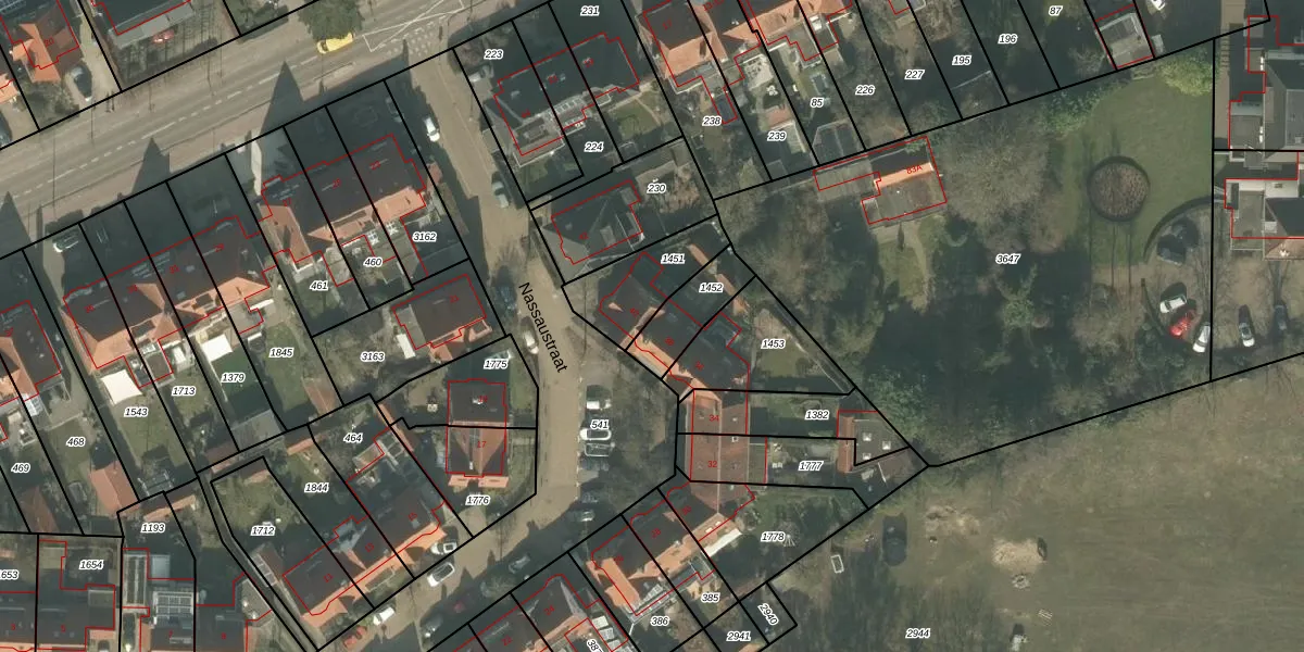 Het perceel waarop Nassaustraat 38 staat heeft een oppervlakte van 153 m². Dit is een middelgroot perceel. De perceeloppervlakte wordt geregistreerd door het Kadaster. Gedetailleerde informatie over de maten van dit perceel kunt u vinden in het rapport Kadastrale kaart met maatvoering van Nassaustraat 38.