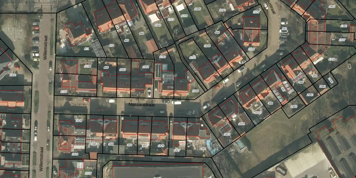 Gebruik de zoekbalk of klik op een perceel voor informatie over de adressen binnen dit perceel.