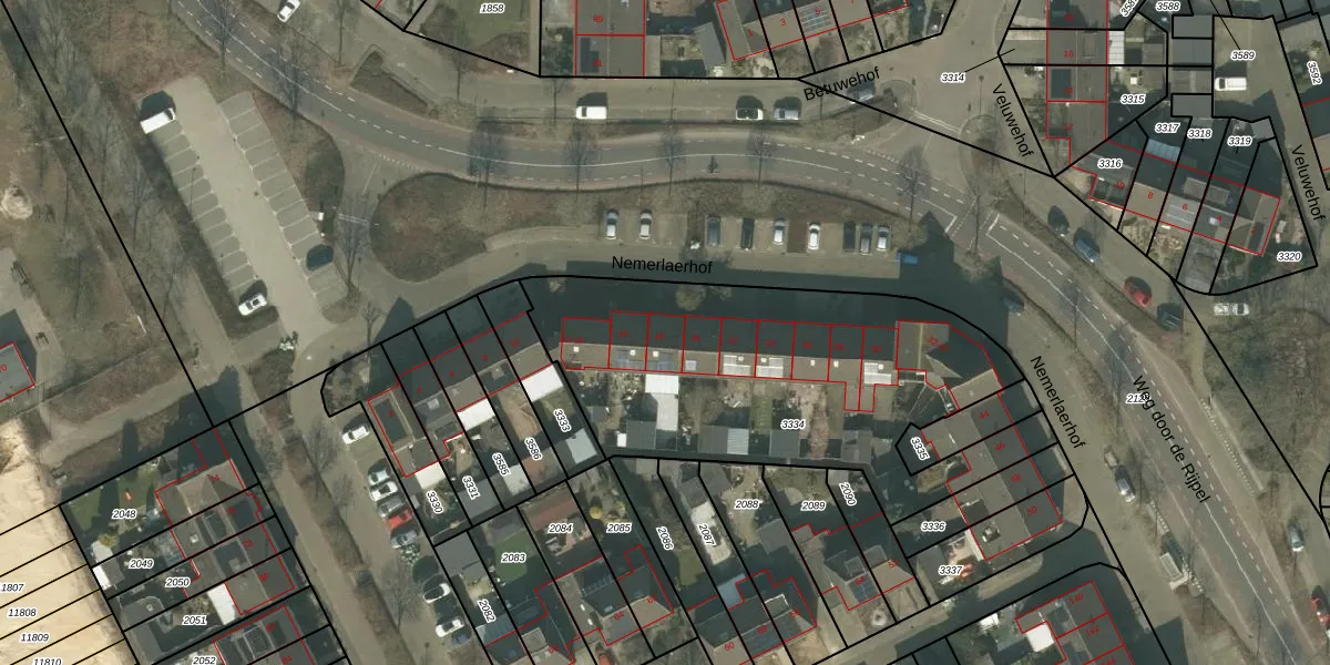 Het perceel waarop Nemerlaerhof 18 staat heeft een oppervlakte van 1773 m². Dit is een zeer groot perceel. De perceeloppervlakte wordt geregistreerd door het Kadaster. Gedetailleerde informatie over de maten van dit perceel kunt u vinden in het rapport Kadastrale kaart met maatvoering van Nemerlaerhof 18.