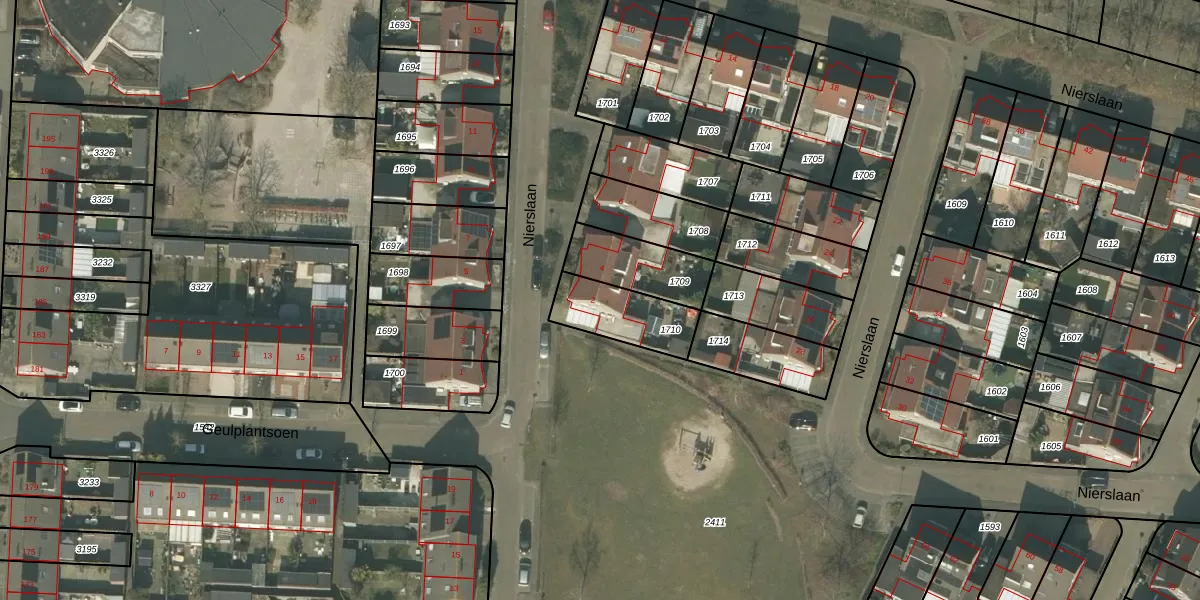 Het perceel waarop Nierslaan 2 staat heeft een oppervlakte van 207 m². Dit is een middelgroot perceel. De perceeloppervlakte wordt geregistreerd door het Kadaster. Gedetailleerde informatie over de maten van dit perceel kunt u vinden in het rapport Kadastrale kaart met maatvoering van Nierslaan 2.