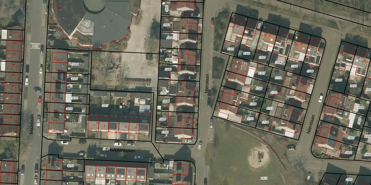 Het perceel waarop Nierslaan 7 staat heeft een oppervlakte van 191 m². Dit is een middelgroot perceel. De perceeloppervlakte wordt geregistreerd door het Kadaster. Gedetailleerde informatie over de maten van dit perceel kunt u vinden in het rapport Kadastrale kaart met maatvoering van Nierslaan 7.