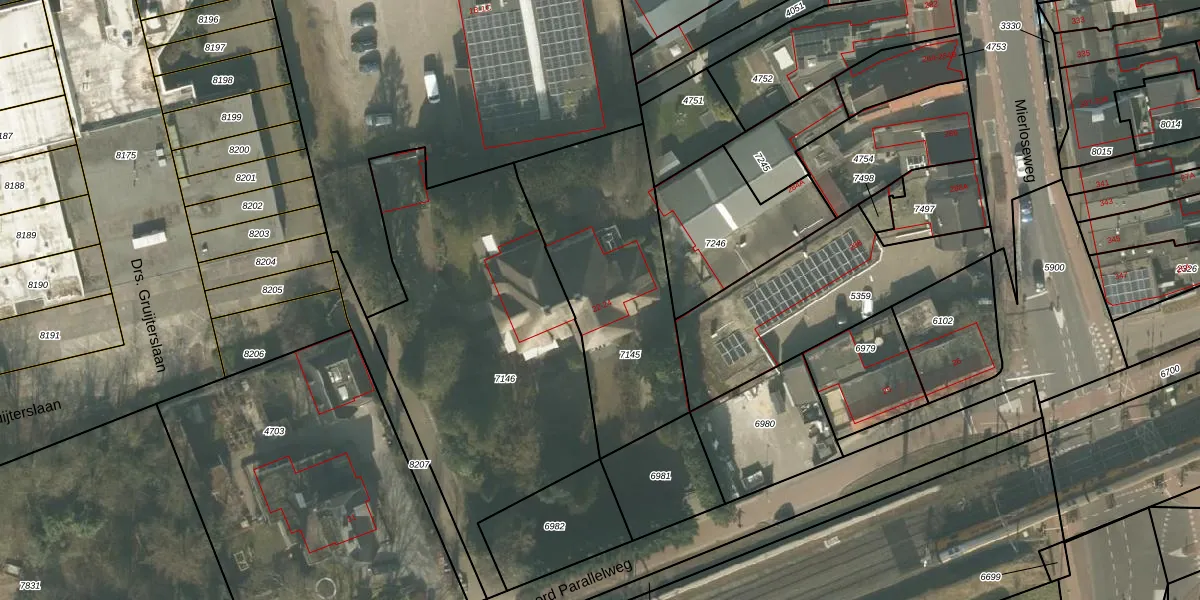 Het perceel waarop Noord Parallelweg 24 staat heeft een oppervlakte van 905 m². Dit is een groot perceel. De perceeloppervlakte wordt geregistreerd door het Kadaster. Gedetailleerde informatie over de maten van dit perceel kunt u vinden in het rapport Kadastrale kaart met maatvoering van Noord Parallelweg 24.