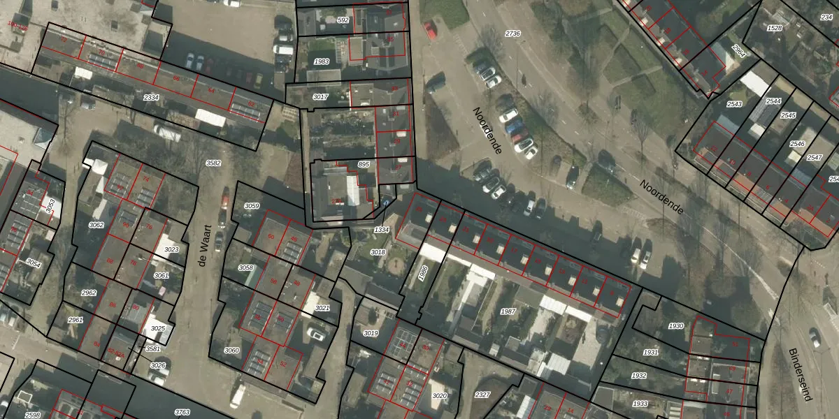 Noordende 25 is gelegen op kadastraal perceel HMD00E3018. Deze kadastrale aanduiding is uniek en wordt gebruikt door het Kadaster om eigendomsrechten en andere zakelijke rechten vast te leggen. Het perceel maakt onderdeel uit van de kadastrale gemeente Helmond.