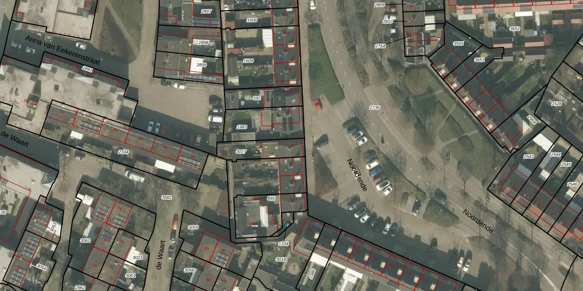 Het perceel waarop Noordende 33 staat heeft een oppervlakte van 190 m². Dit is een middelgroot perceel. De perceeloppervlakte wordt geregistreerd door het Kadaster. Gedetailleerde informatie over de maten van dit perceel kunt u vinden in het rapport Kadastrale kaart met maatvoering van Noordende 33.