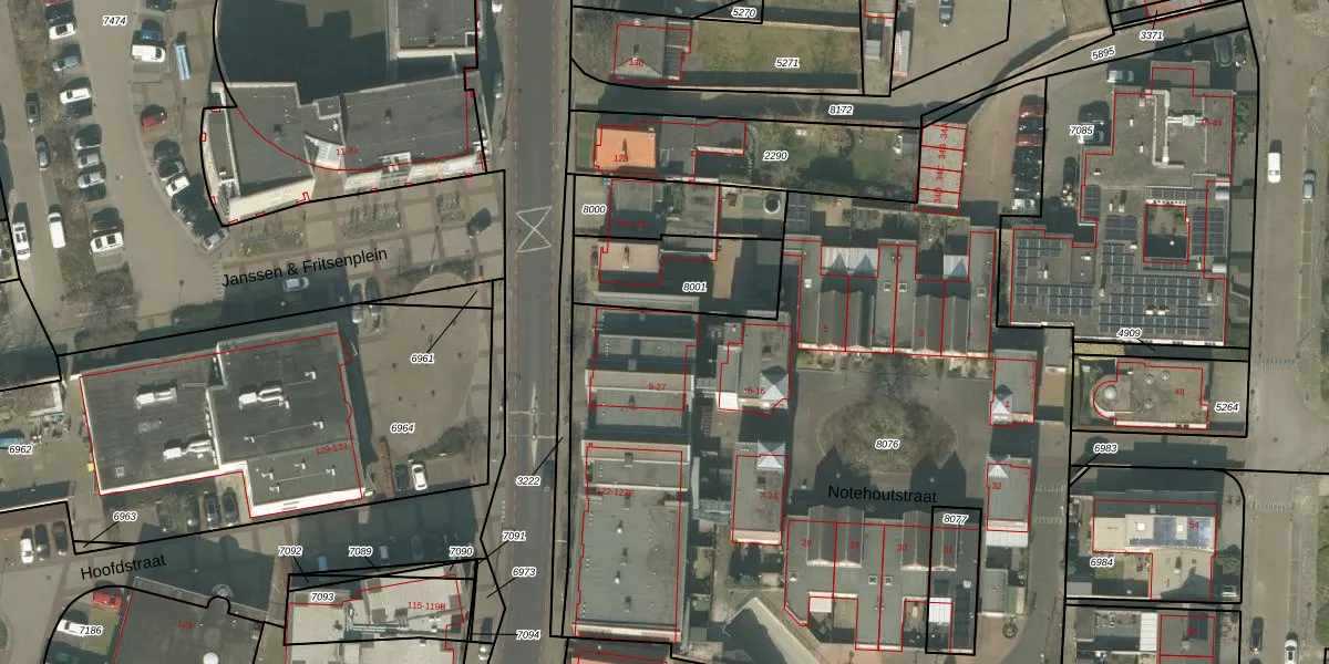 Het perceel waarop Notehoutstraat 17 staat heeft een oppervlakte van 5660 m². Dit is een zeer groot perceel. De perceeloppervlakte wordt geregistreerd door het Kadaster. Gedetailleerde informatie over de maten van dit perceel kunt u vinden in het rapport Kadastrale kaart met maatvoering van Notehoutstraat 17.