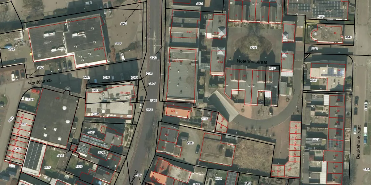 Het perceel waarop Notehoutstraat 23 staat heeft een oppervlakte van 5660 m². Dit is een zeer groot perceel. De perceeloppervlakte wordt geregistreerd door het Kadaster. Gedetailleerde informatie over de maten van dit perceel kunt u vinden in het rapport Kadastrale kaart met maatvoering van Notehoutstraat 23.