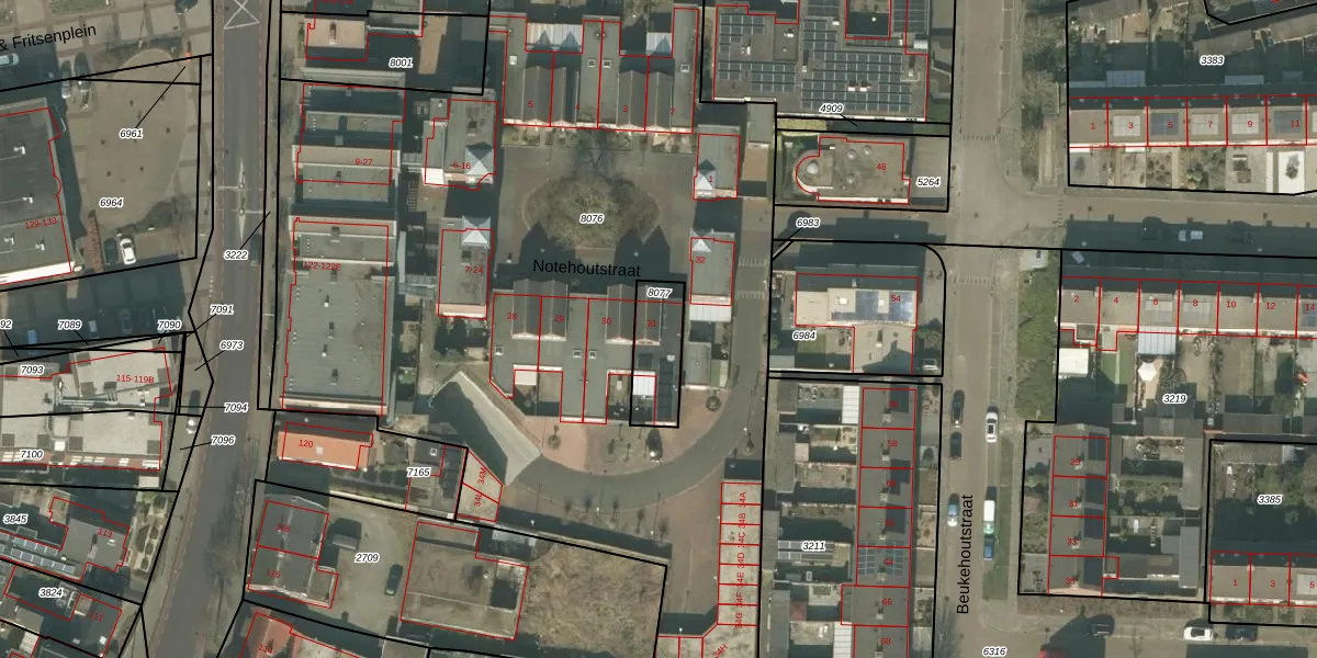 Het perceel waarop Notehoutstraat 31 staat heeft een oppervlakte van 160 m². Dit is een middelgroot perceel. De perceeloppervlakte wordt geregistreerd door het Kadaster. Gedetailleerde informatie over de maten van dit perceel kunt u vinden in het rapport Kadastrale kaart met maatvoering van Notehoutstraat 31.