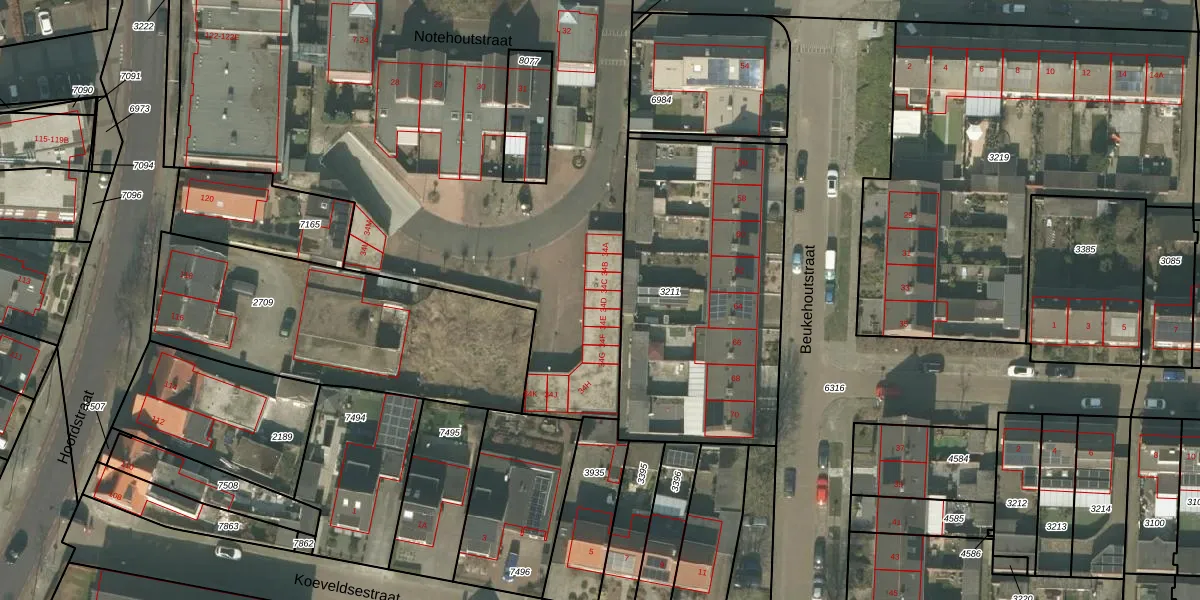 Notehoutstraat 34-D is gelegen op kadastraal perceel HMD00T8076. Deze kadastrale aanduiding is uniek en wordt gebruikt door het Kadaster om eigendomsrechten en andere zakelijke rechten vast te leggen. Het perceel maakt onderdeel uit van de kadastrale gemeente Helmond.
