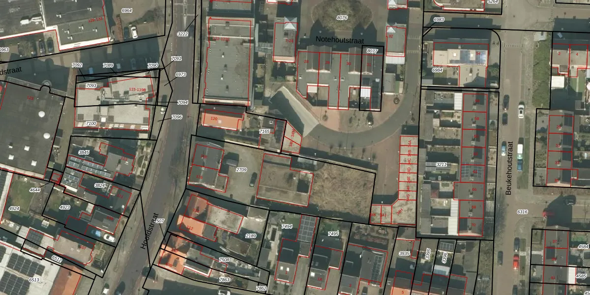 Notehoutstraat 34-L is gelegen op kadastraal perceel HMD00T8076. Deze kadastrale aanduiding is uniek en wordt gebruikt door het Kadaster om eigendomsrechten en andere zakelijke rechten vast te leggen. Het perceel maakt onderdeel uit van de kadastrale gemeente Helmond.
