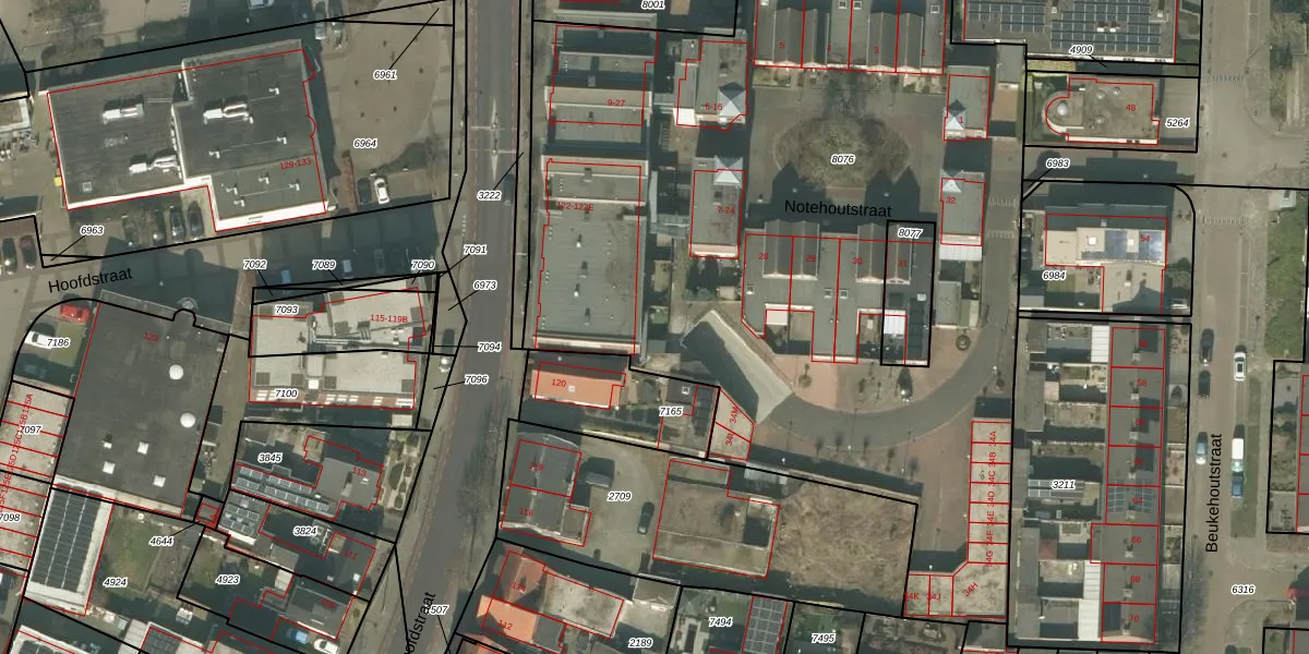 Het perceel waarop Notehoutstraat 34-N staat heeft een oppervlakte van 5660 m². Dit is een zeer groot perceel. De perceeloppervlakte wordt geregistreerd door het Kadaster. Gedetailleerde informatie over de maten van dit perceel kunt u vinden in het rapport Kadastrale kaart met maatvoering van Notehoutstraat 34-N.