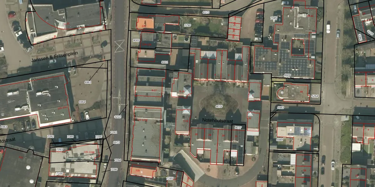 Het perceel waarop Notehoutstraat 6 staat heeft een oppervlakte van 5660 m². Dit is een zeer groot perceel. De perceeloppervlakte wordt geregistreerd door het Kadaster. Gedetailleerde informatie over de maten van dit perceel kunt u vinden in het rapport Kadastrale kaart met maatvoering van Notehoutstraat 6.