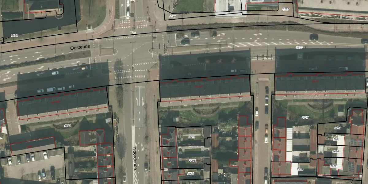 Het perceel waarop Oostende 105 staat heeft een oppervlakte van 3300 m². Dit is een zeer groot perceel. De perceeloppervlakte wordt geregistreerd door het Kadaster. Gedetailleerde informatie over de maten van dit perceel kunt u vinden in het rapport Kadastrale kaart met maatvoering van Oostende 105.