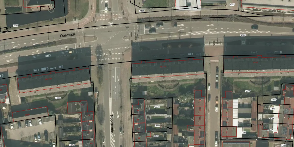 Het perceel waarop Oostende 107 staat heeft een oppervlakte van 3300 m². Dit is een zeer groot perceel. De perceeloppervlakte wordt geregistreerd door het Kadaster. Gedetailleerde informatie over de maten van dit perceel kunt u vinden in het rapport Kadastrale kaart met maatvoering van Oostende 107.