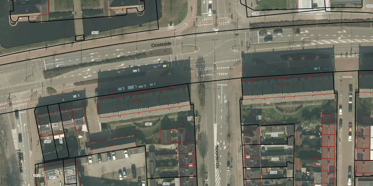 Het perceel waarop Oostende 115 staat heeft een oppervlakte van 2610 m². Dit is een zeer groot perceel. De perceeloppervlakte wordt geregistreerd door het Kadaster. Gedetailleerde informatie over de maten van dit perceel kunt u vinden in het rapport Kadastrale kaart met maatvoering van Oostende 115.