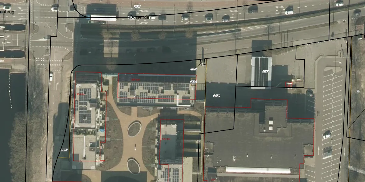 Het perceel waarop Oostende 197 staat heeft een oppervlakte van 1,3 ha. Dit is een zeer groot perceel. De perceeloppervlakte wordt geregistreerd door het Kadaster. Gedetailleerde informatie over de maten van dit perceel kunt u vinden in het rapport Kadastrale kaart met maatvoering van Oostende 197.