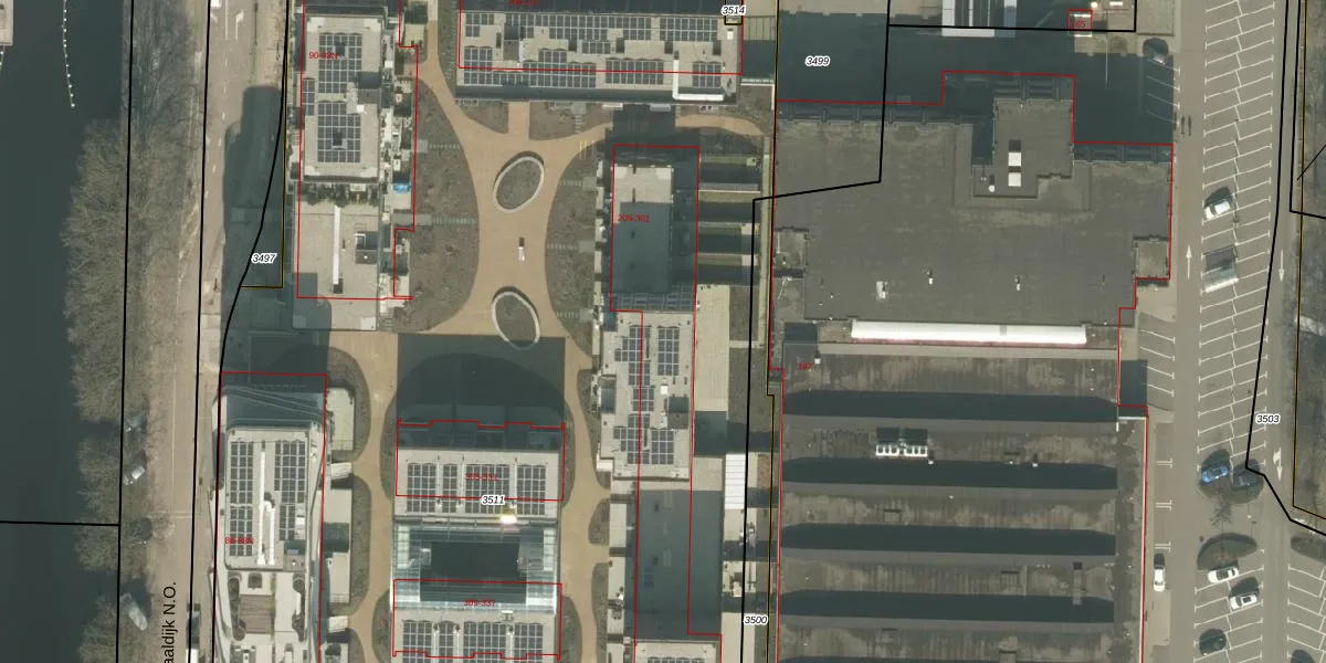 Het perceel waarop Oostende 245 staat heeft een oppervlakte van 1,3 ha. Dit is een zeer groot perceel. De perceeloppervlakte wordt geregistreerd door het Kadaster. Gedetailleerde informatie over de maten van dit perceel kunt u vinden in het rapport Kadastrale kaart met maatvoering van Oostende 245.