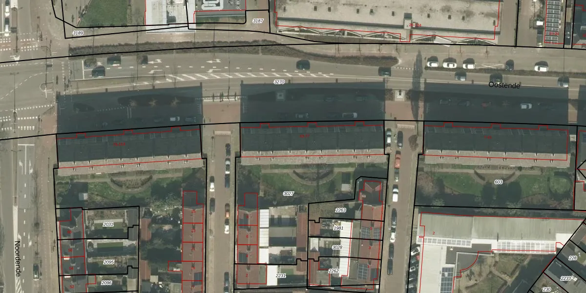 Het perceel waarop Oostende 65 staat heeft een oppervlakte van 1813 m². Dit is een zeer groot perceel. De perceeloppervlakte wordt geregistreerd door het Kadaster. Gedetailleerde informatie over de maten van dit perceel kunt u vinden in het rapport Kadastrale kaart met maatvoering van Oostende 65.