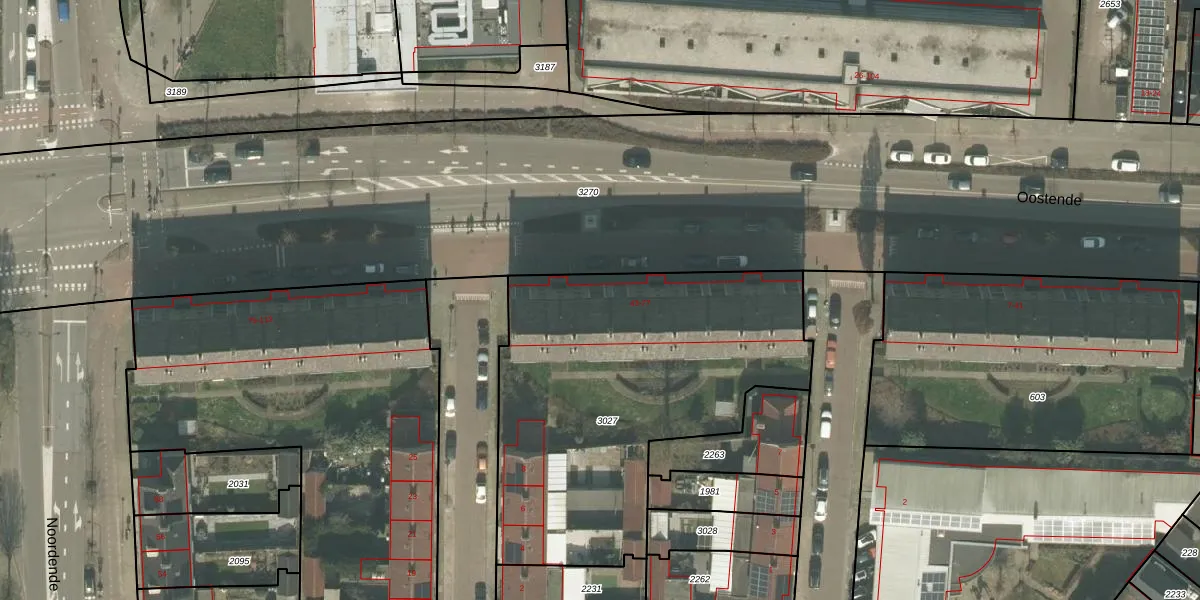 Het perceel waarop Oostende 67 staat heeft een oppervlakte van 1813 m². Dit is een zeer groot perceel. De perceeloppervlakte wordt geregistreerd door het Kadaster. Gedetailleerde informatie over de maten van dit perceel kunt u vinden in het rapport Kadastrale kaart met maatvoering van Oostende 67.