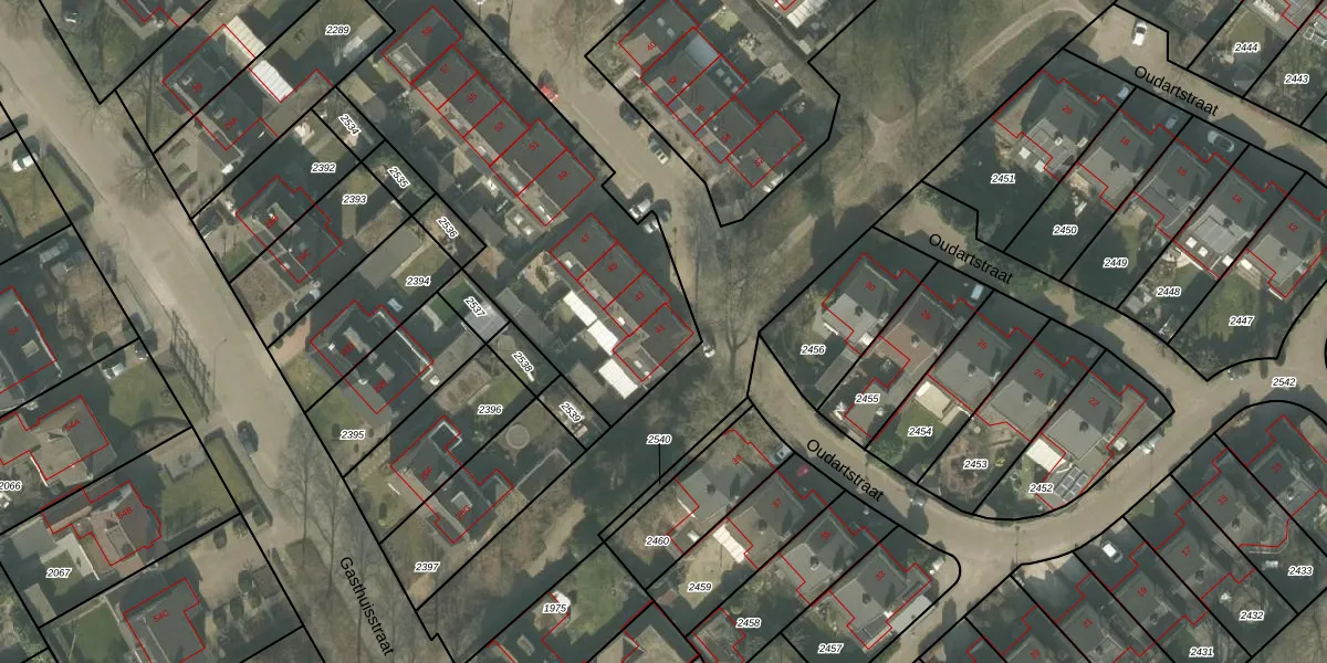 Het perceel waarop Oudartstraat 41 staat heeft een oppervlakte van 2690 m². Dit is een zeer groot perceel. De perceeloppervlakte wordt geregistreerd door het Kadaster. Gedetailleerde informatie over de maten van dit perceel kunt u vinden in het rapport Kadastrale kaart met maatvoering van Oudartstraat 41.