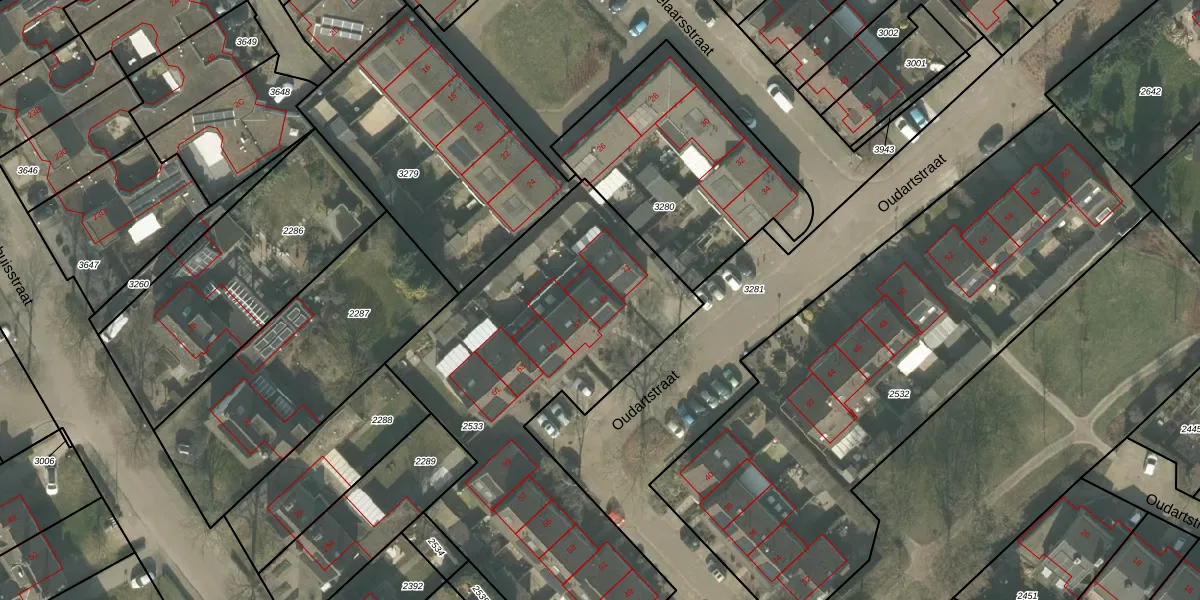 Het perceel waarop Oudartstraat 69 staat heeft een oppervlakte van 2690 m². Dit is een zeer groot perceel. De perceeloppervlakte wordt geregistreerd door het Kadaster. Gedetailleerde informatie over de maten van dit perceel kunt u vinden in het rapport Kadastrale kaart met maatvoering van Oudartstraat 69.