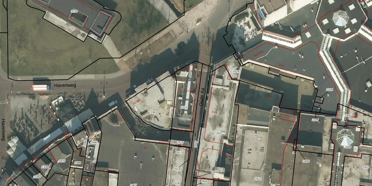 Het perceel waarop Oude Aa 18 staat heeft een oppervlakte van 449 m². Dit is een groot perceel. De perceeloppervlakte wordt geregistreerd door het Kadaster. Gedetailleerde informatie over de maten van dit perceel kunt u vinden in het rapport Kadastrale kaart met maatvoering van Oude Aa 18.