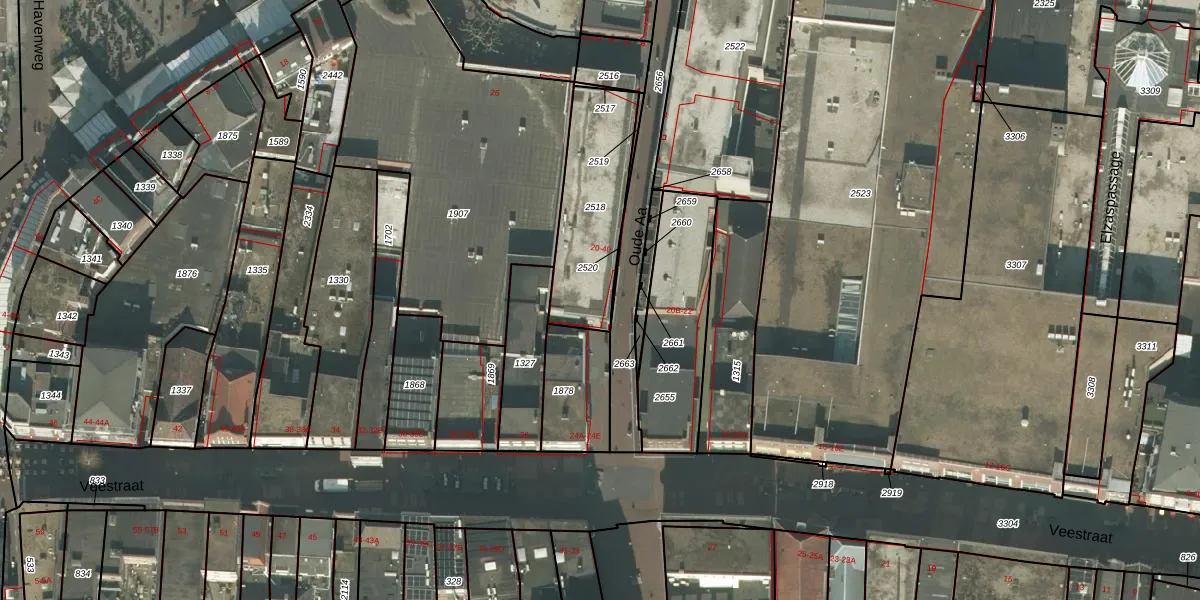 Het perceel waarop Oude Aa 26 staat heeft een oppervlakte van 421 m². Dit is een groot perceel. De perceeloppervlakte wordt geregistreerd door het Kadaster. Gedetailleerde informatie over de maten van dit perceel kunt u vinden in het rapport Kadastrale kaart met maatvoering van Oude Aa 26.