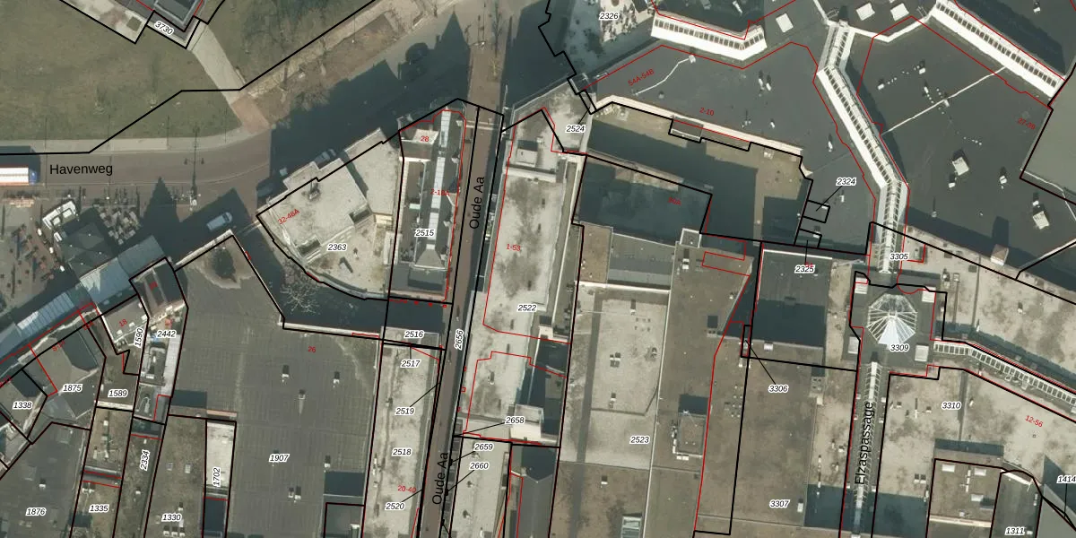 Het perceel waarop Oude Aa 37 staat heeft een oppervlakte van 1051 m². Dit is een zeer groot perceel. De perceeloppervlakte wordt geregistreerd door het Kadaster. Gedetailleerde informatie over de maten van dit perceel kunt u vinden in het rapport Kadastrale kaart met maatvoering van Oude Aa 37.