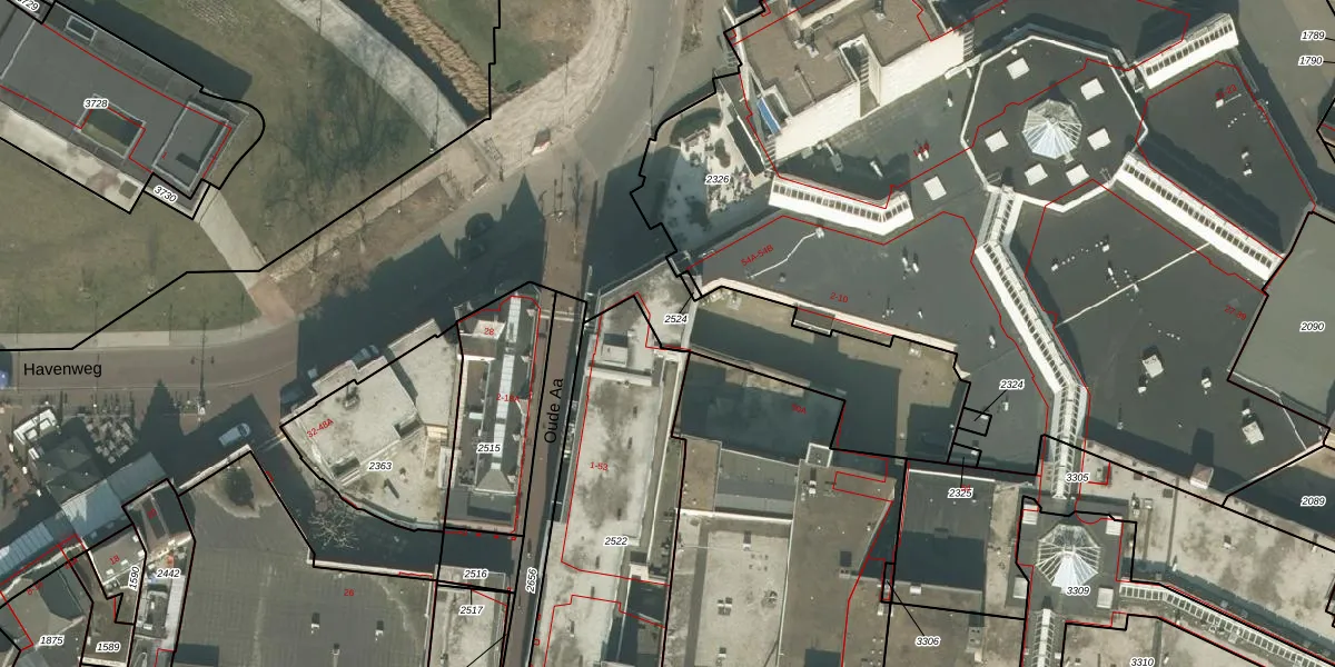 Het perceel waarop Oude Aa 47 staat heeft een oppervlakte van 3,7 ha. Dit is een zeer groot perceel. De perceeloppervlakte wordt geregistreerd door het Kadaster. Gedetailleerde informatie over de maten van dit perceel kunt u vinden in het rapport Kadastrale kaart met maatvoering van Oude Aa 47.