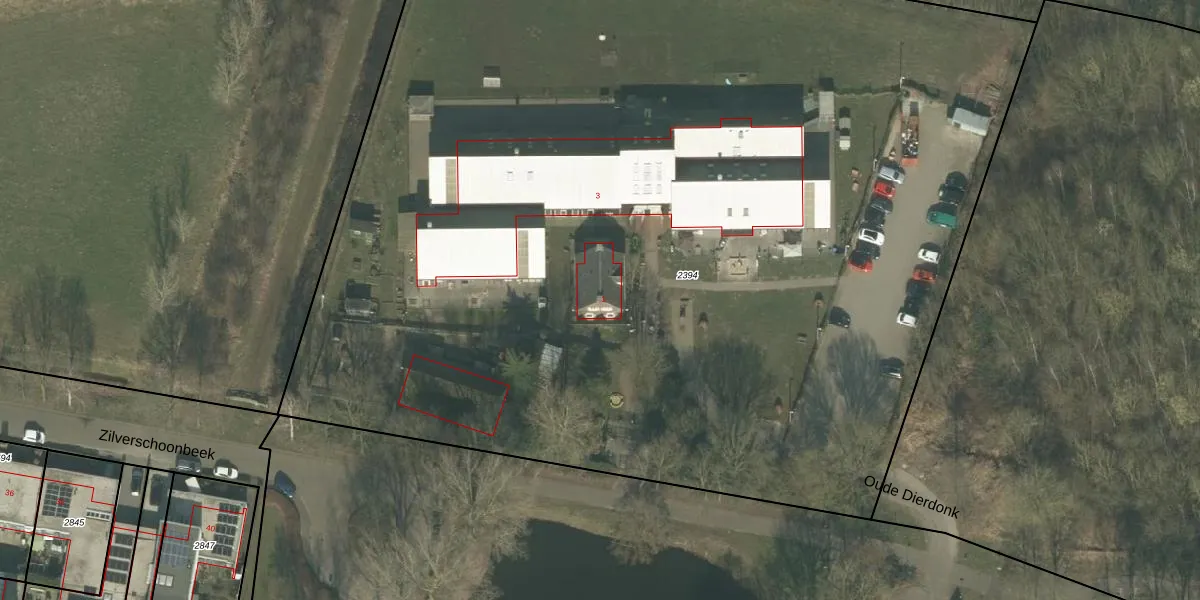 Het perceel waarop Oude Dierdonk 1 staat heeft een oppervlakte van 8765 m². Dit is een zeer groot perceel. De perceeloppervlakte wordt geregistreerd door het Kadaster. Gedetailleerde informatie over de maten van dit perceel kunt u vinden in het rapport Kadastrale kaart met maatvoering van Oude Dierdonk 1.