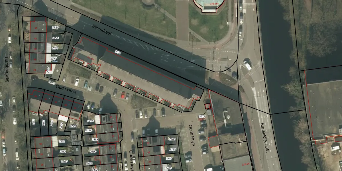 Het perceel waarop Oude Huys 121 staat heeft een oppervlakte van 1435 m². Dit is een zeer groot perceel. De perceeloppervlakte wordt geregistreerd door het Kadaster. Gedetailleerde informatie over de maten van dit perceel kunt u vinden in het rapport Kadastrale kaart met maatvoering van Oude Huys 121.