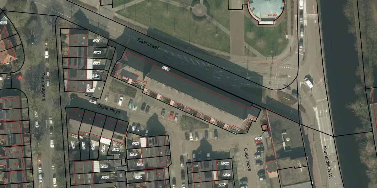 Het perceel waarop Oude Huys 79 staat heeft een oppervlakte van 1435 m². Dit is een zeer groot perceel. De perceeloppervlakte wordt geregistreerd door het Kadaster. Gedetailleerde informatie over de maten van dit perceel kunt u vinden in het rapport Kadastrale kaart met maatvoering van Oude Huys 79.