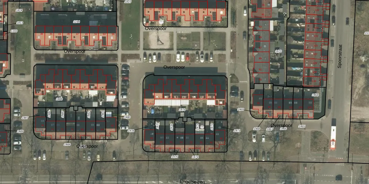 Het perceel waarop Overspoor 36 staat heeft een oppervlakte van 1070 m². Dit is een zeer groot perceel. De perceeloppervlakte wordt geregistreerd door het Kadaster. Gedetailleerde informatie over de maten van dit perceel kunt u vinden in het rapport Kadastrale kaart met maatvoering van Overspoor 36.