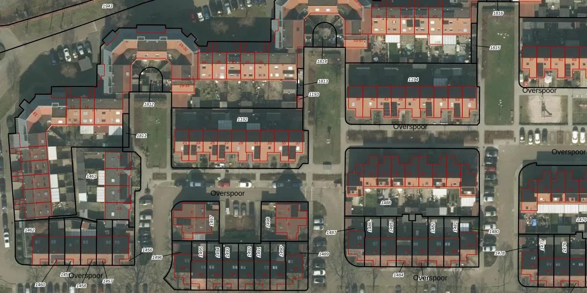 Het perceel waarop Overspoor 37 staat heeft een oppervlakte van 937 m². Dit is een groot perceel. De perceeloppervlakte wordt geregistreerd door het Kadaster. Gedetailleerde informatie over de maten van dit perceel kunt u vinden in het rapport Kadastrale kaart met maatvoering van Overspoor 37.