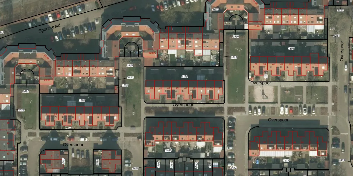 Het perceel waarop Overspoor 45 staat heeft een oppervlakte van 952 m². Dit is een groot perceel. De perceeloppervlakte wordt geregistreerd door het Kadaster. Gedetailleerde informatie over de maten van dit perceel kunt u vinden in het rapport Kadastrale kaart met maatvoering van Overspoor 45.
