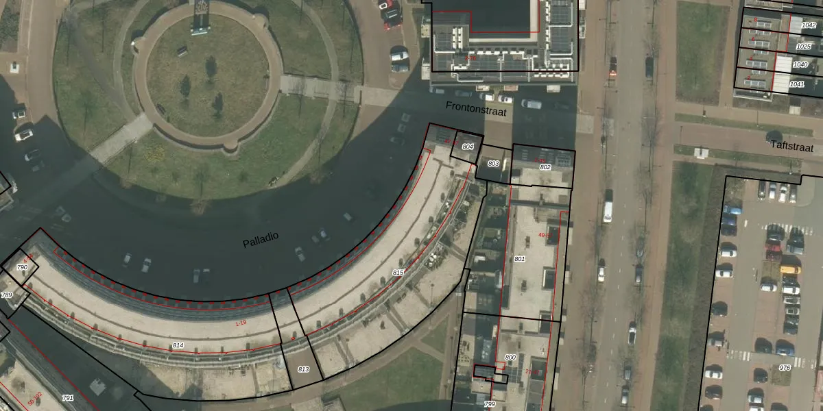 Het perceel waarop Palladio 17 staat heeft een oppervlakte van 1363 m². Dit is een zeer groot perceel. De perceeloppervlakte wordt geregistreerd door het Kadaster. Gedetailleerde informatie over de maten van dit perceel kunt u vinden in het rapport Kadastrale kaart met maatvoering van Palladio 17.