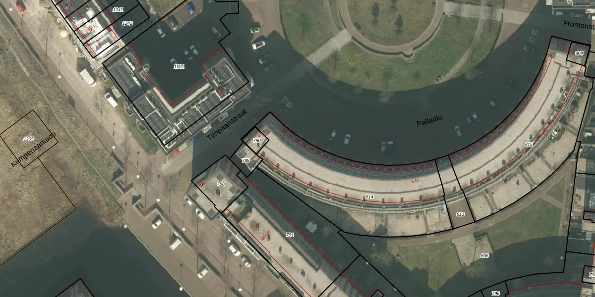 Het perceel waarop Palladio 2 staat heeft een oppervlakte van 1430 m². Dit is een zeer groot perceel. De perceeloppervlakte wordt geregistreerd door het Kadaster. Gedetailleerde informatie over de maten van dit perceel kunt u vinden in het rapport Kadastrale kaart met maatvoering van Palladio 2.