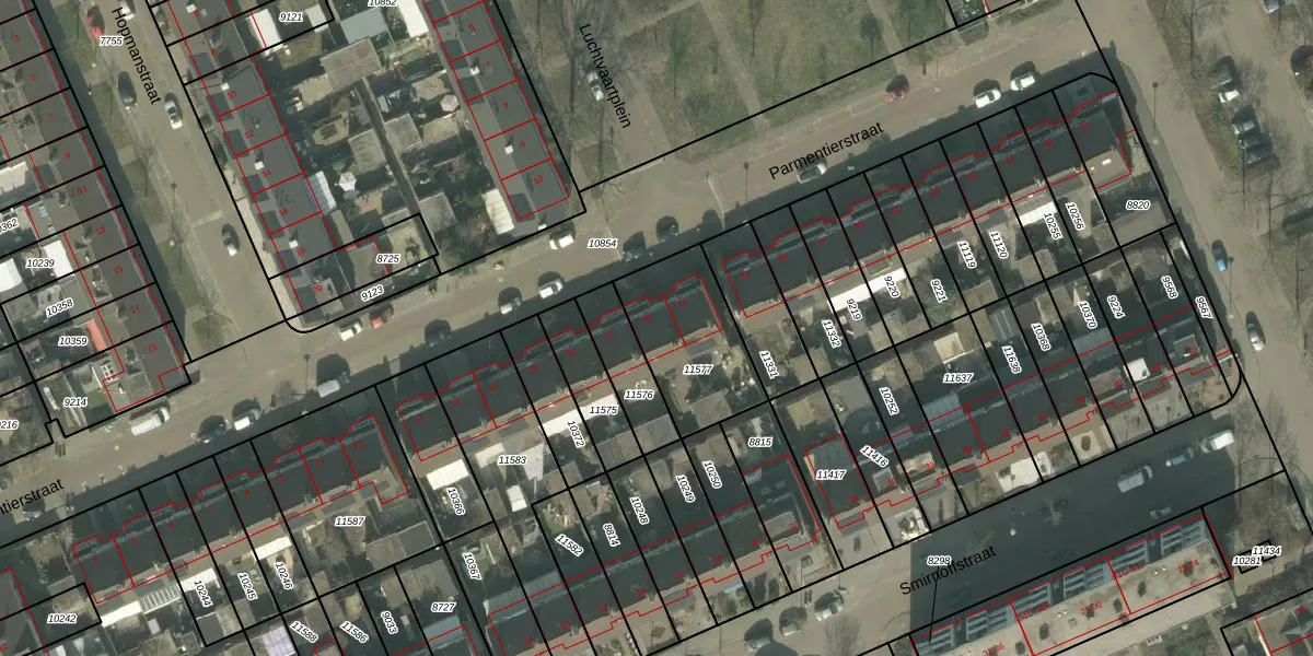 Het perceel waarop Parmentierstraat 29 staat heeft een oppervlakte van 380 m². Dit is een groot perceel. De perceeloppervlakte wordt geregistreerd door het Kadaster. Gedetailleerde informatie over de maten van dit perceel kunt u vinden in het rapport Kadastrale kaart met maatvoering van Parmentierstraat 29.