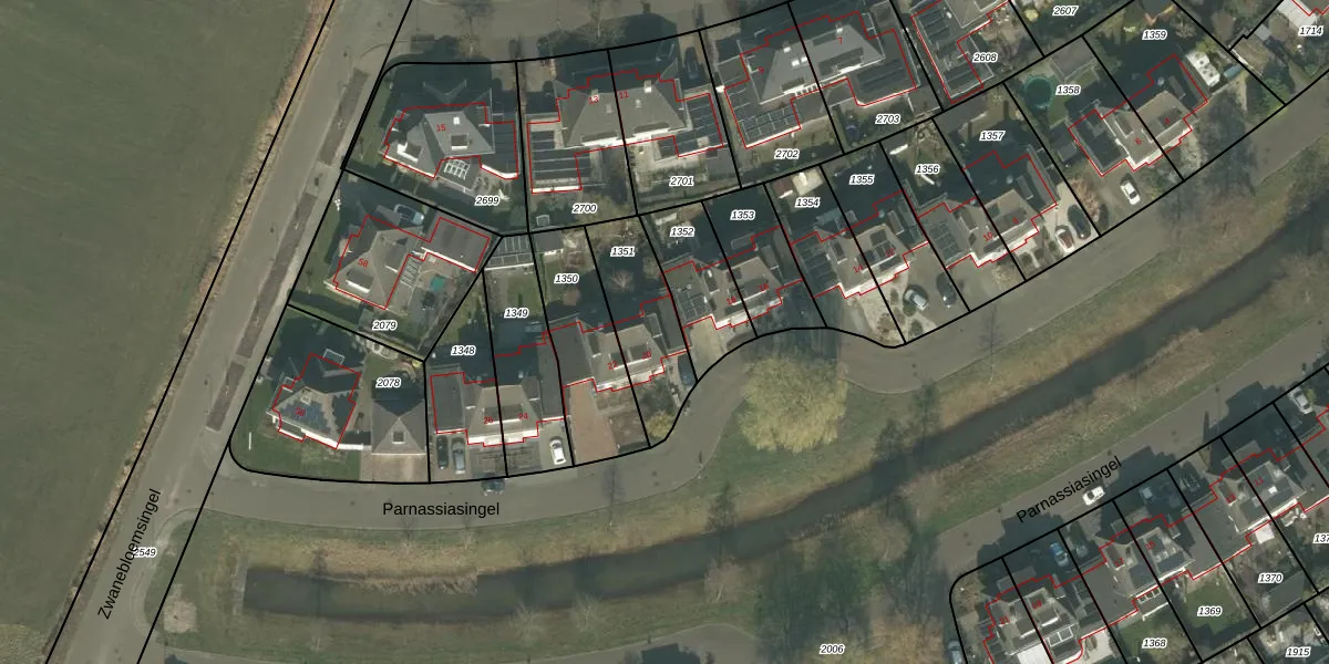 Het perceel waarop Parnassiasingel 20 staat heeft een oppervlakte van 294 m². Dit is een middelgroot perceel. De perceeloppervlakte wordt geregistreerd door het Kadaster. Gedetailleerde informatie over de maten van dit perceel kunt u vinden in het rapport Kadastrale kaart met maatvoering van Parnassiasingel 20.