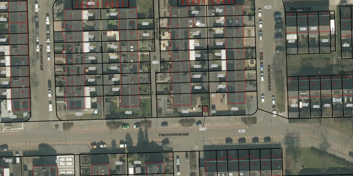 Het perceel waarop Piccolopad 3 staat heeft een oppervlakte van 186 m². Dit is een middelgroot perceel. De perceeloppervlakte wordt geregistreerd door het Kadaster. Gedetailleerde informatie over de maten van dit perceel kunt u vinden in het rapport Kadastrale kaart met maatvoering van Piccolopad 3.