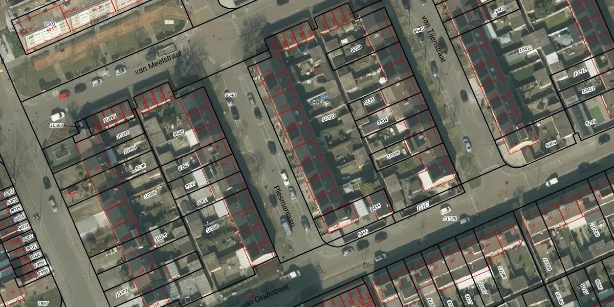 Het perceel waarop Plesmanlaan 108 staat heeft een oppervlakte van 2454 m². Dit is een zeer groot perceel. De perceeloppervlakte wordt geregistreerd door het Kadaster. Gedetailleerde informatie over de maten van dit perceel kunt u vinden in het rapport Kadastrale kaart met maatvoering van Plesmanlaan 108.