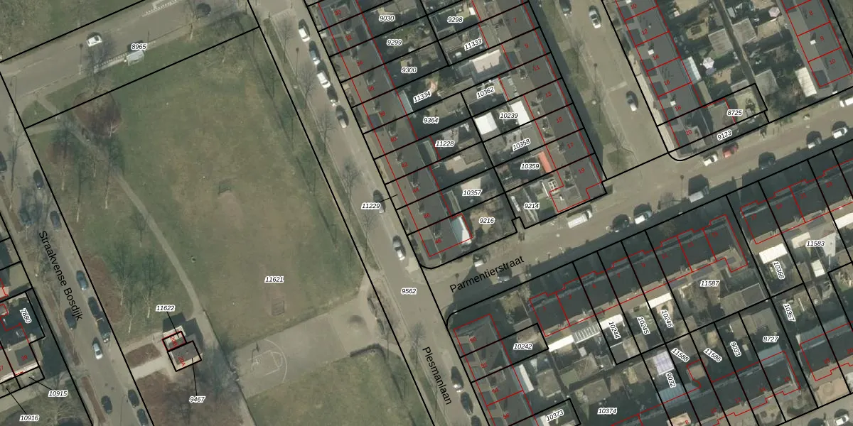 Gebruik de zoekbalk of klik op een perceel voor informatie over de adressen binnen dit perceel.