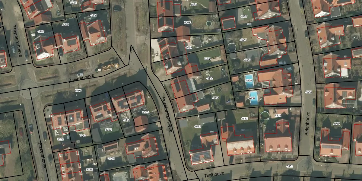 Het perceel waarop Poeldonksehoeve 3 staat heeft een oppervlakte van 390 m². Dit is een groot perceel. De perceeloppervlakte wordt geregistreerd door het Kadaster. Gedetailleerde informatie over de maten van dit perceel kunt u vinden in het rapport Kadastrale kaart met maatvoering van Poeldonksehoeve 3.