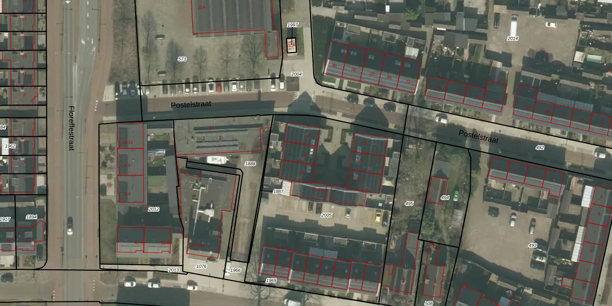 Het perceel waarop Postelstraat 27 staat heeft een oppervlakte van 2443 m². Dit is een zeer groot perceel. De perceeloppervlakte wordt geregistreerd door het Kadaster. Gedetailleerde informatie over de maten van dit perceel kunt u vinden in het rapport Kadastrale kaart met maatvoering van Postelstraat 27.