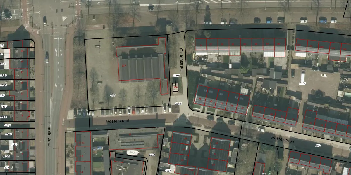 Gebruik de zoekbalk of klik op een perceel voor informatie over de adressen binnen dit perceel.