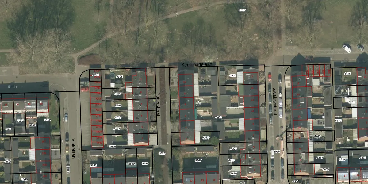 Het perceel waarop Putterstraat 10 staat heeft een oppervlakte van 1738 m². Dit is een zeer groot perceel. De perceeloppervlakte wordt geregistreerd door het Kadaster. Gedetailleerde informatie over de maten van dit perceel kunt u vinden in het rapport Kadastrale kaart met maatvoering van Putterstraat 10.