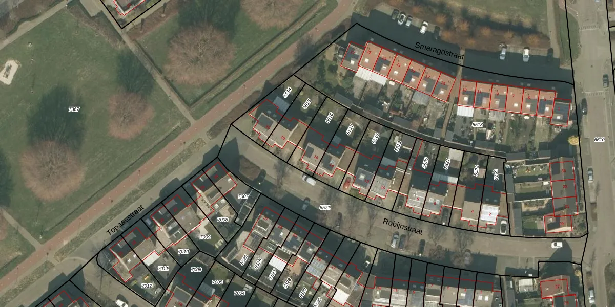Het perceel waarop Robijnstraat 16 staat heeft een oppervlakte van 220 m². Dit is een middelgroot perceel. De perceeloppervlakte wordt geregistreerd door het Kadaster. Gedetailleerde informatie over de maten van dit perceel kunt u vinden in het rapport Kadastrale kaart met maatvoering van Robijnstraat 16.
