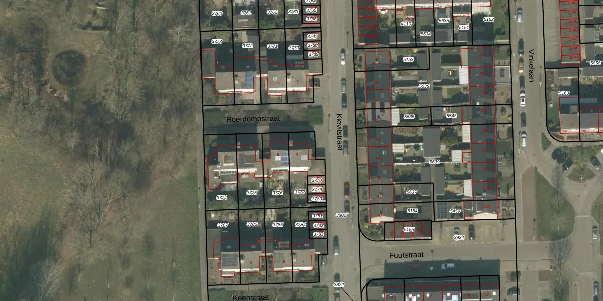 Gebruik de zoekbalk of klik op een perceel voor informatie over de adressen binnen dit perceel.