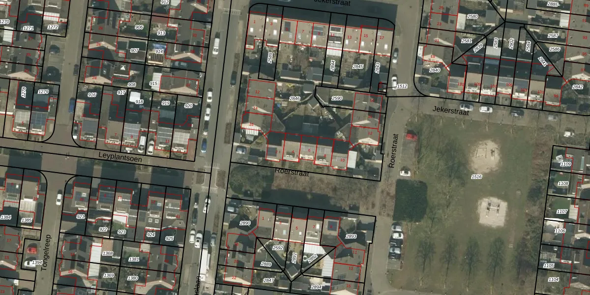 Het perceel waarop Roerstraat 4 staat heeft een oppervlakte van 1885 m². Dit is een zeer groot perceel. De perceeloppervlakte wordt geregistreerd door het Kadaster. Gedetailleerde informatie over de maten van dit perceel kunt u vinden in het rapport Kadastrale kaart met maatvoering van Roerstraat 4.